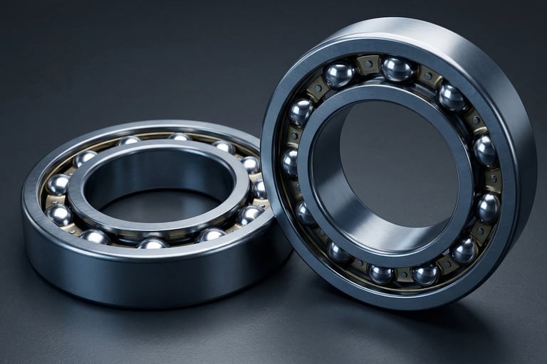 Deep groove ball bearings come in several shield and seal configurations. Open bearings have no seals or shields — ideal when you supply your own lubrication system. 2Z (ZZ) bearings use metal shields on both sides to keep contaminants out while allowing high-speed operation. 2RS (2RS1) bearings use rubber contact seals on both sides for full protection in dirty or wet environments. C3 clearance variants provide extra internal clearance for high-temperature applications or interference fits.