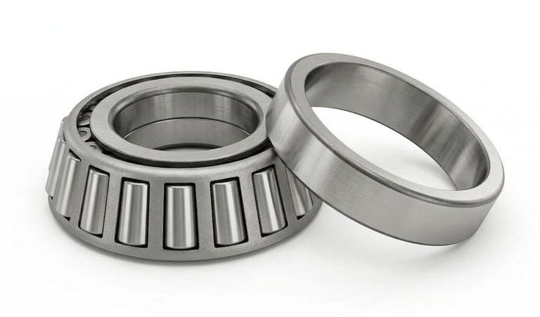 Handle combined radial and axial loads simultaneously. The go-to design for industrial gearboxes, rolling mills, conveyor systems, and heavy machinery where thrust loads are present. Available in metric series (30000, 32000, 33000) and inch-dimension Timken-style designations (L44, LM48, HM88, 300 & 400 series, and more). Single-row, double-row, and four-row configurations.